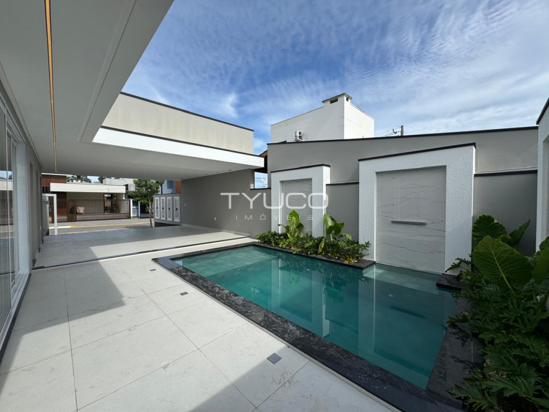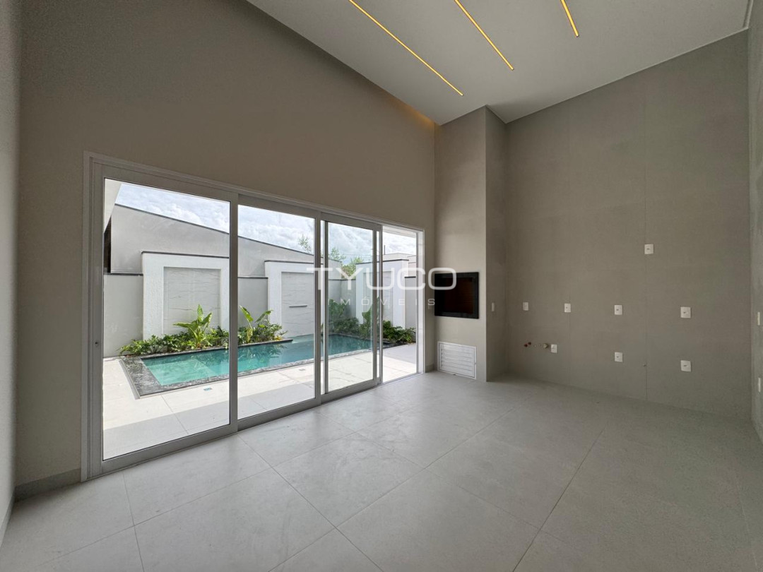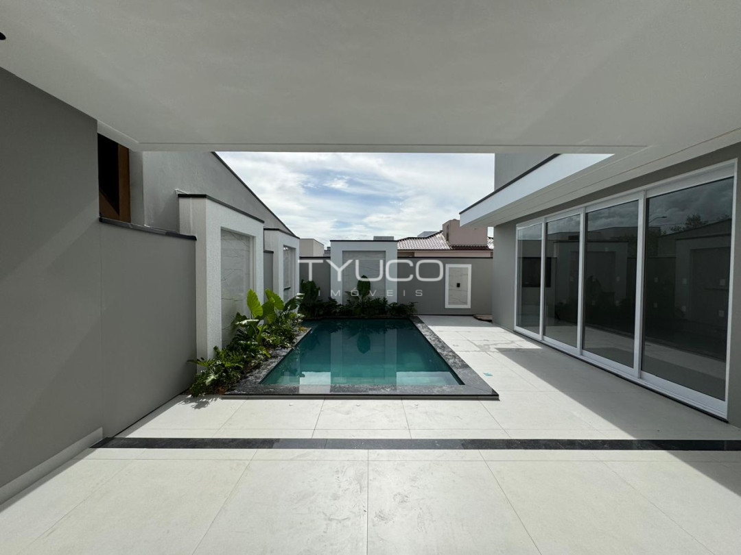 Casa de alto padrão à venda com três dormitórios, sendo uma suíte, ambientes amplos e excelente acabamento. Conta com piscina privativa, área externa espaçosa e churrasqueira, ideal para momentos de lazer.
